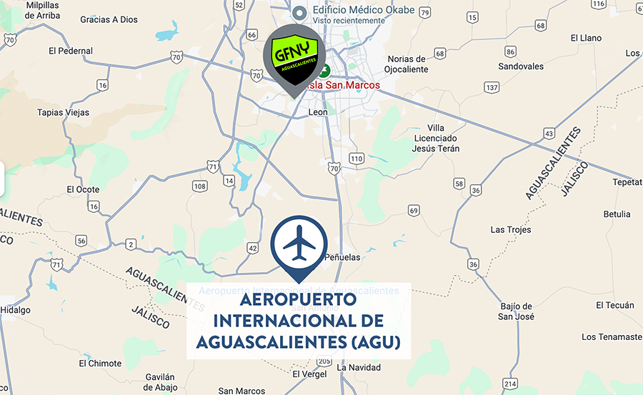 El Aeropuerto de Aguascalientes (AGU) está convenientemente ubicado a solo 20 minutos de la zona hotelera en Aguascalientes. Taxis y servicios de alquiler de autos están disponibles en el aeropuerto, ofreciendo opciones convenientes de transporte a su alojamiento.